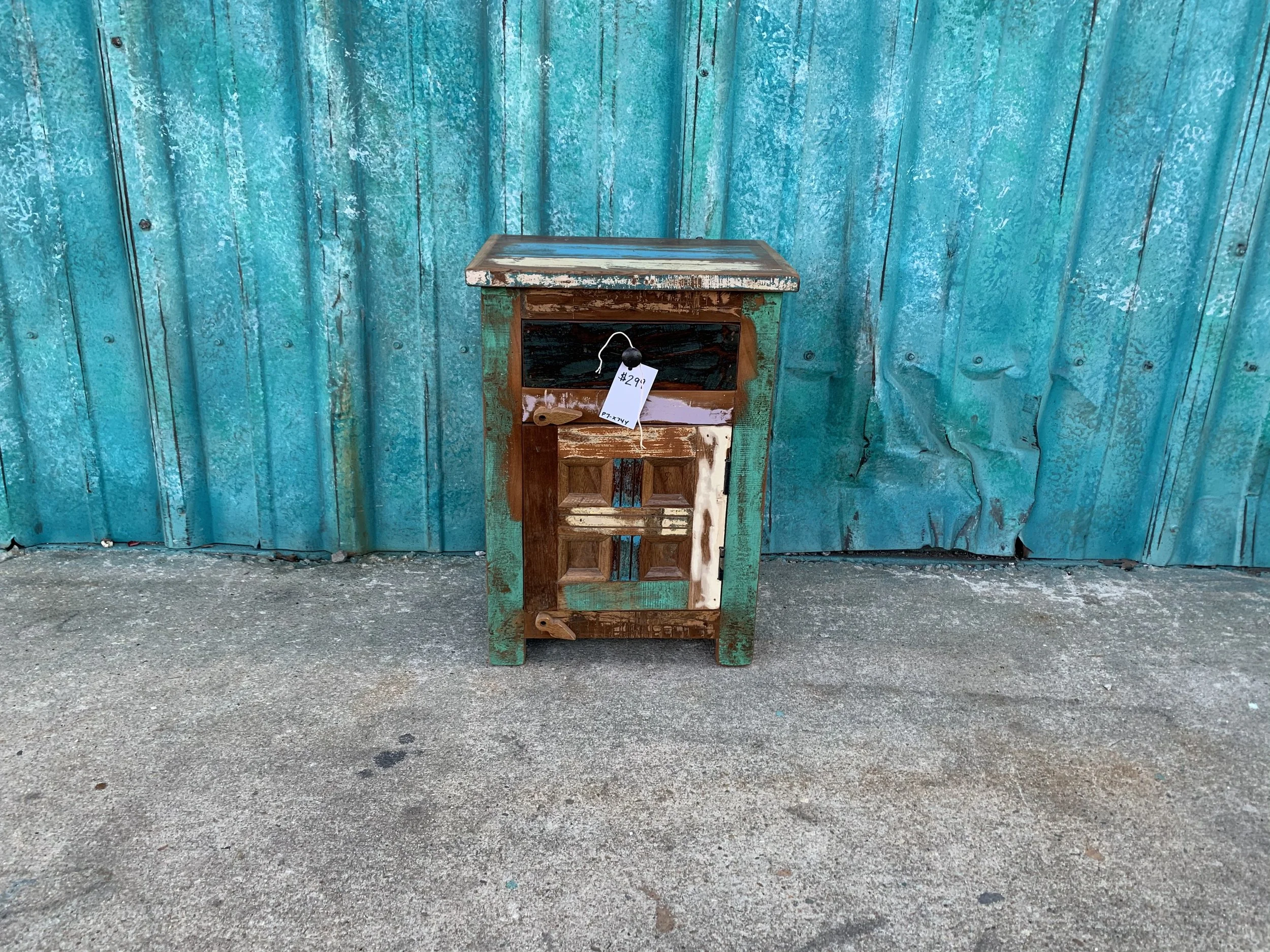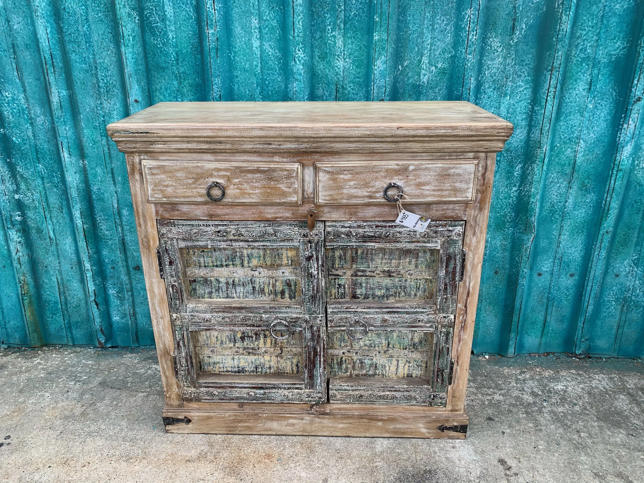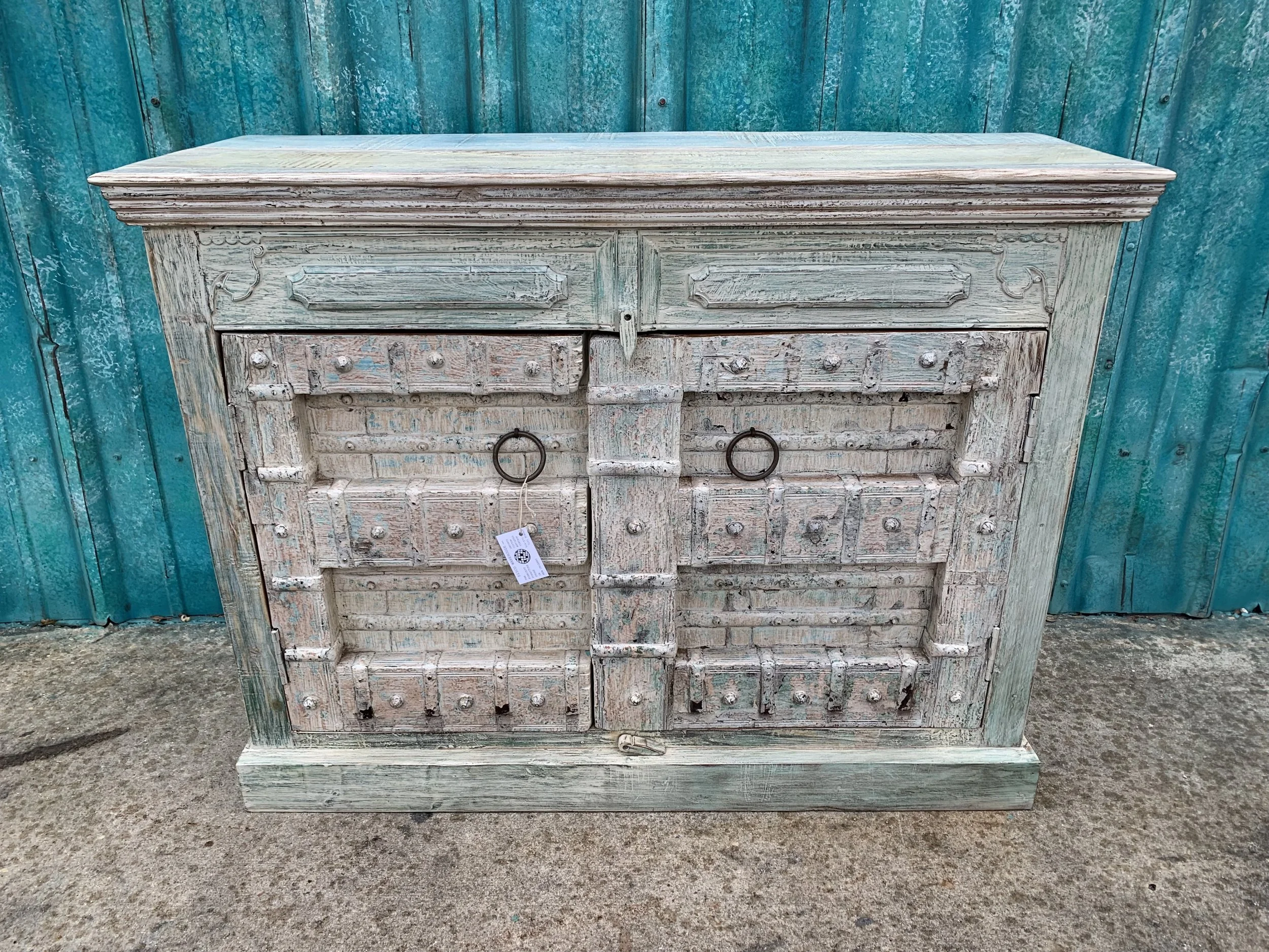 Blue/Whitewash Old-Door Cabinet - 55” x 21” x 42”