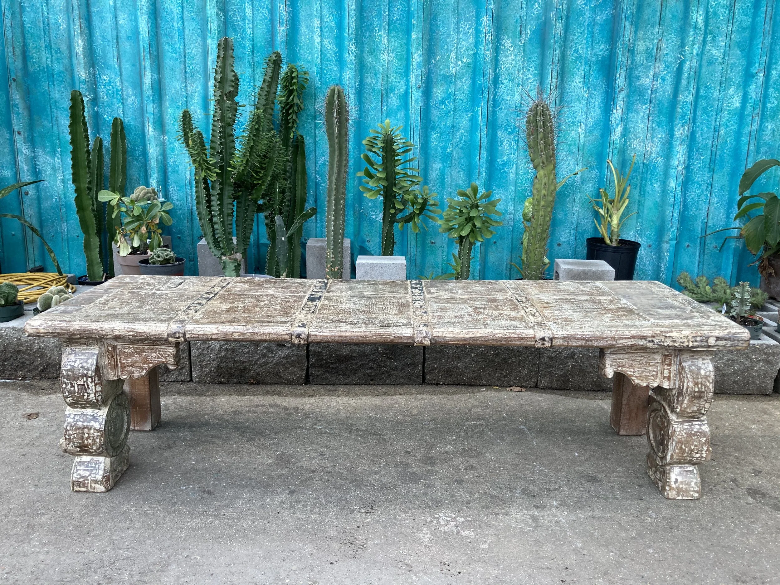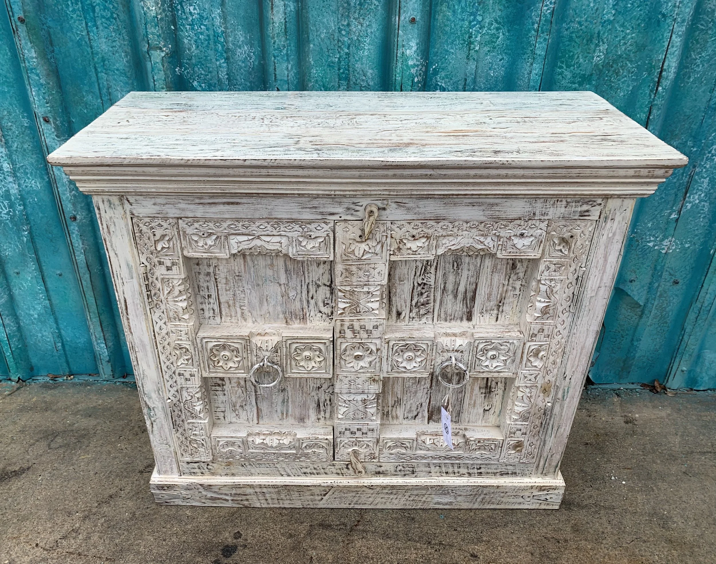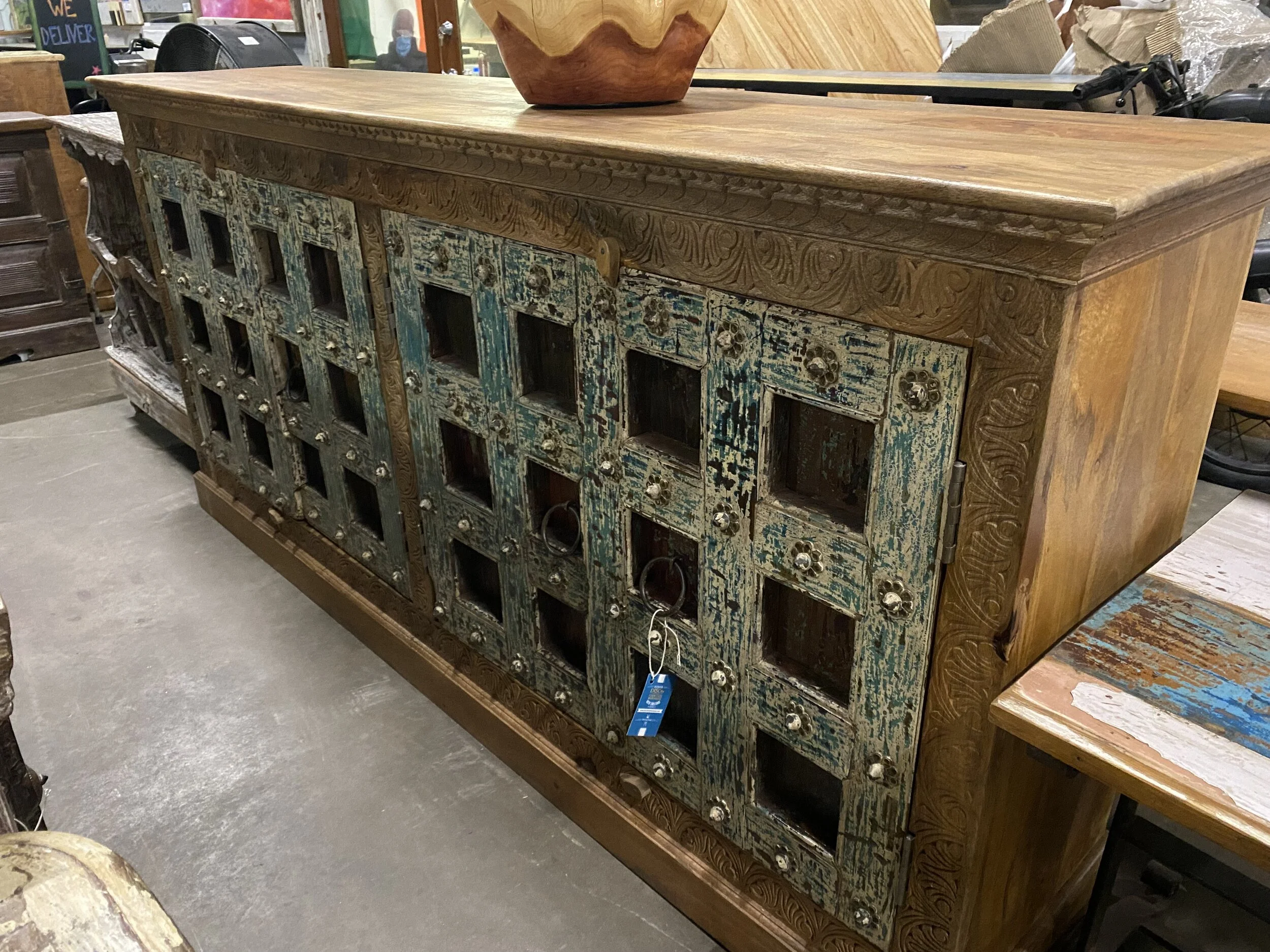 Old Door Buffet w/ Carved Details - 84” x 19” x 36”