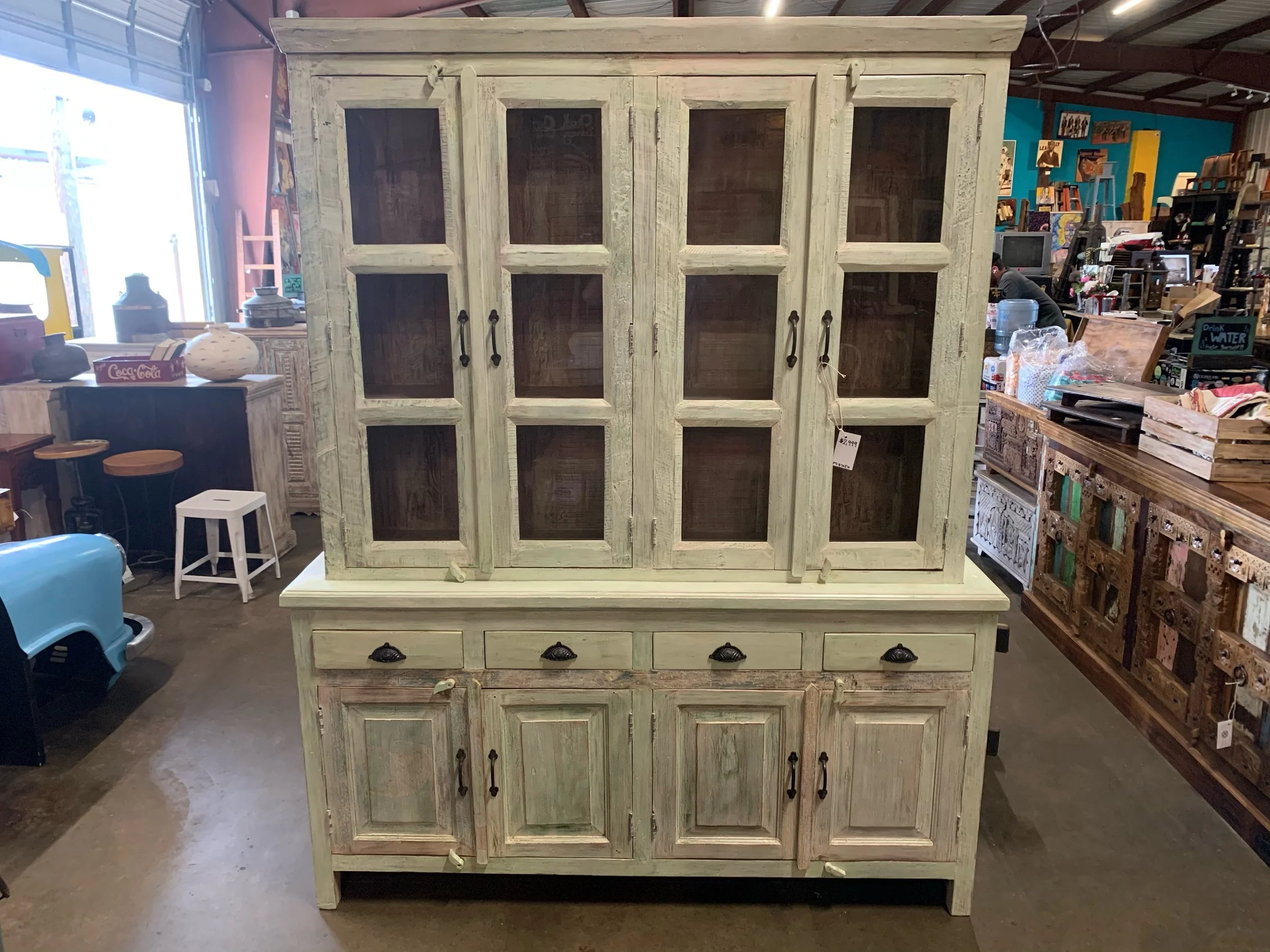 Light Green Distressed Cabinet (2-Pieces) - 70” x 17” x 88”