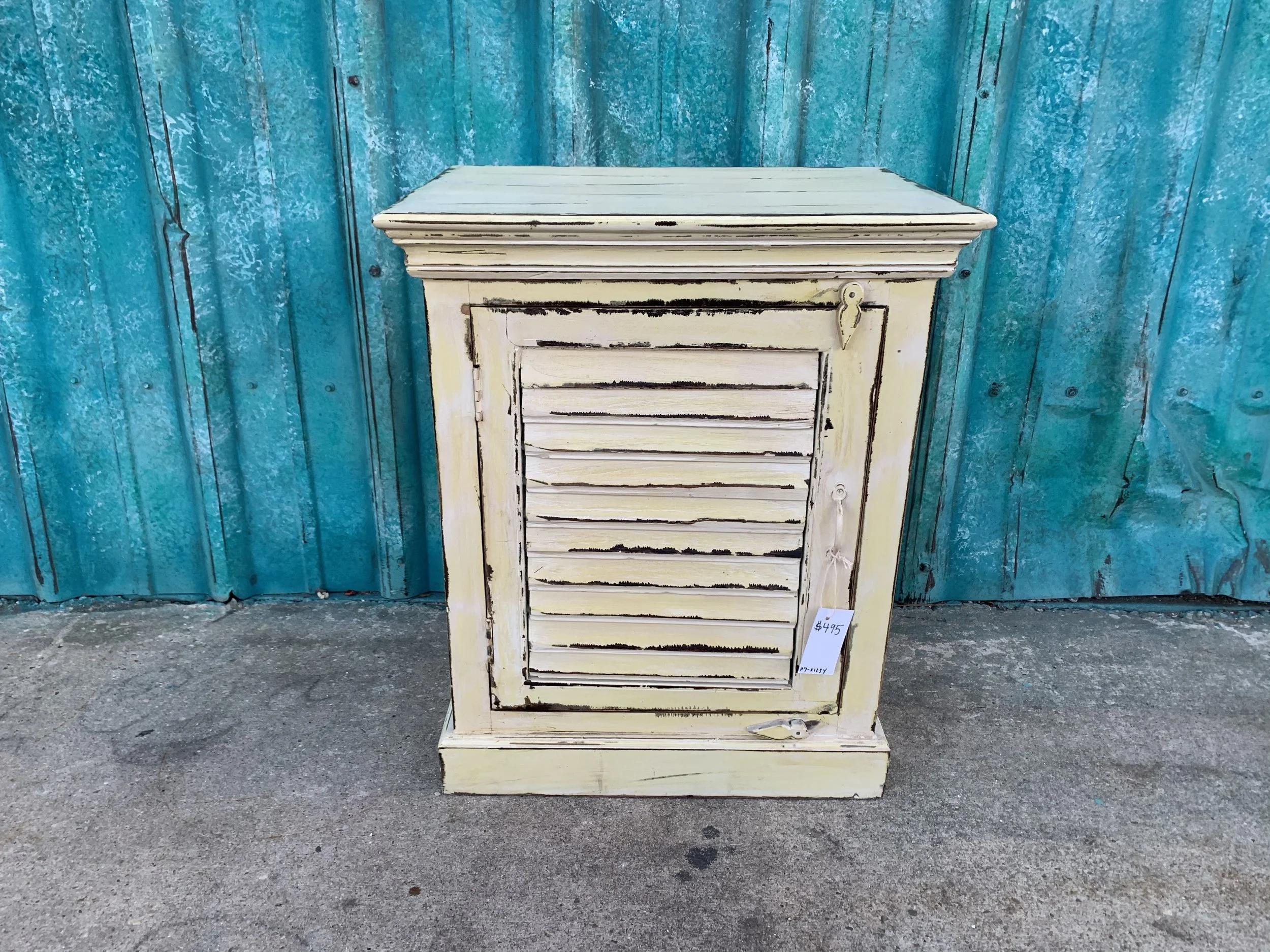 Tan Distressed Shutter Nightstand - 28” x 14” x 31”