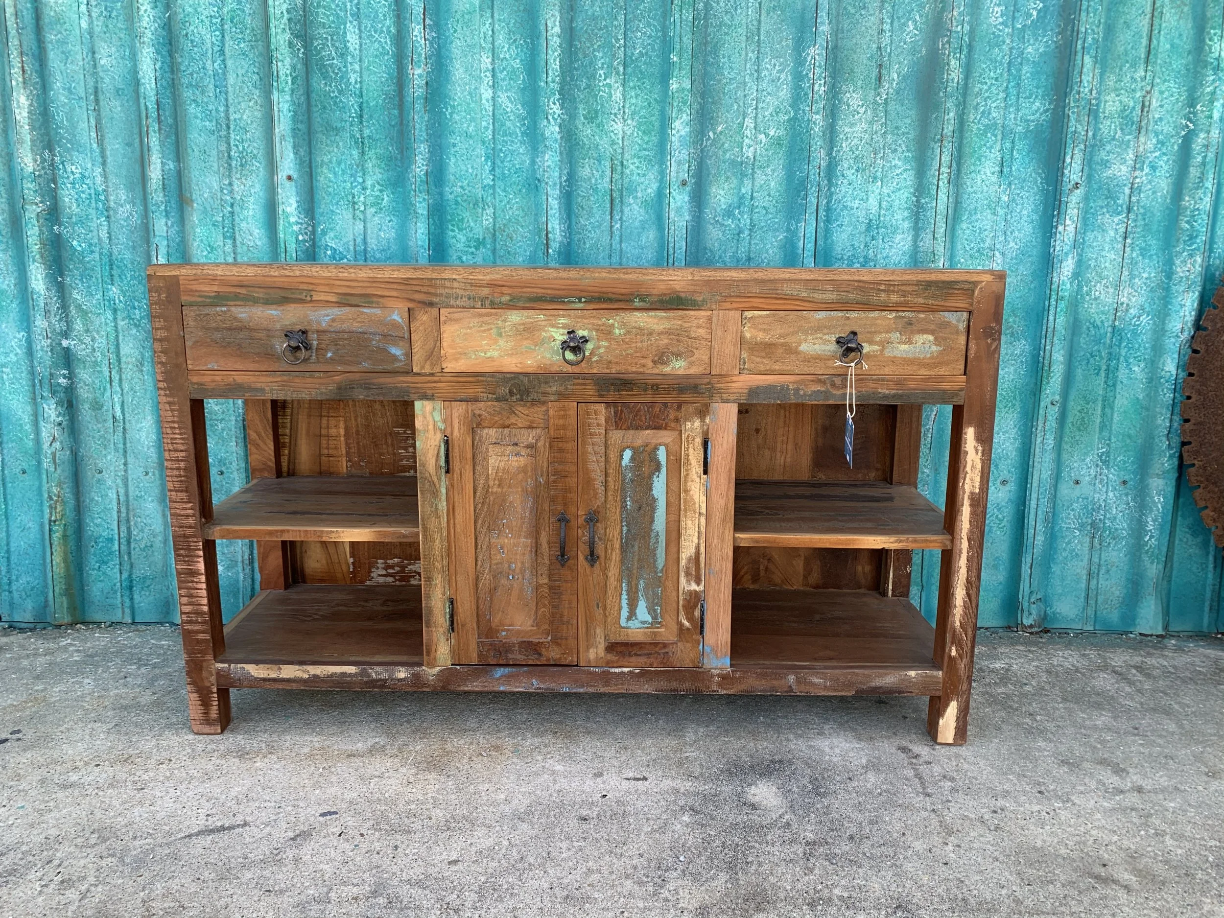 Old Door Buffet w/ Open Shelves - 72” x 17” x 37”