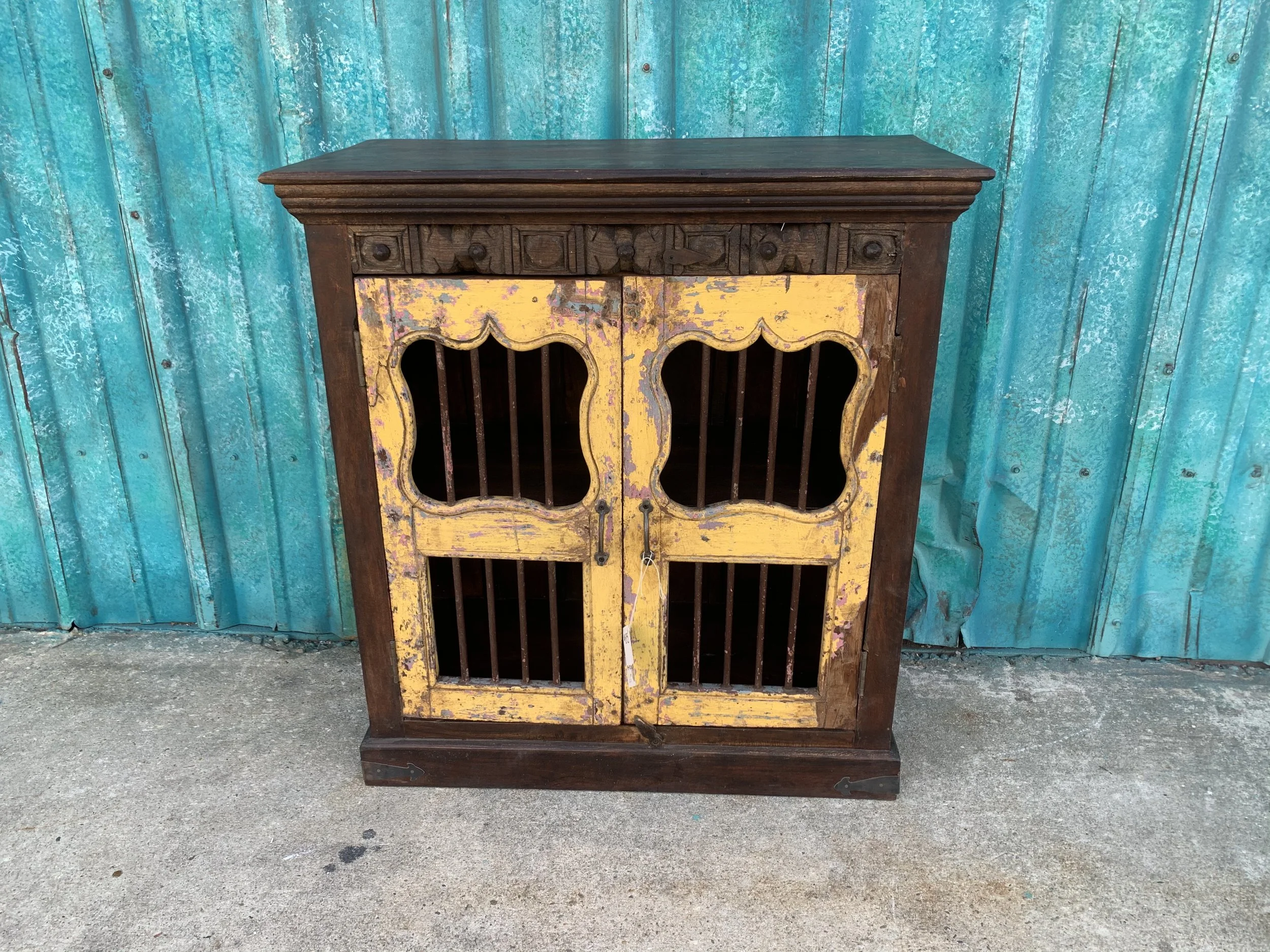 Yellow Door Cabinet w/ Metalwork - 36” x 18” x 39”
